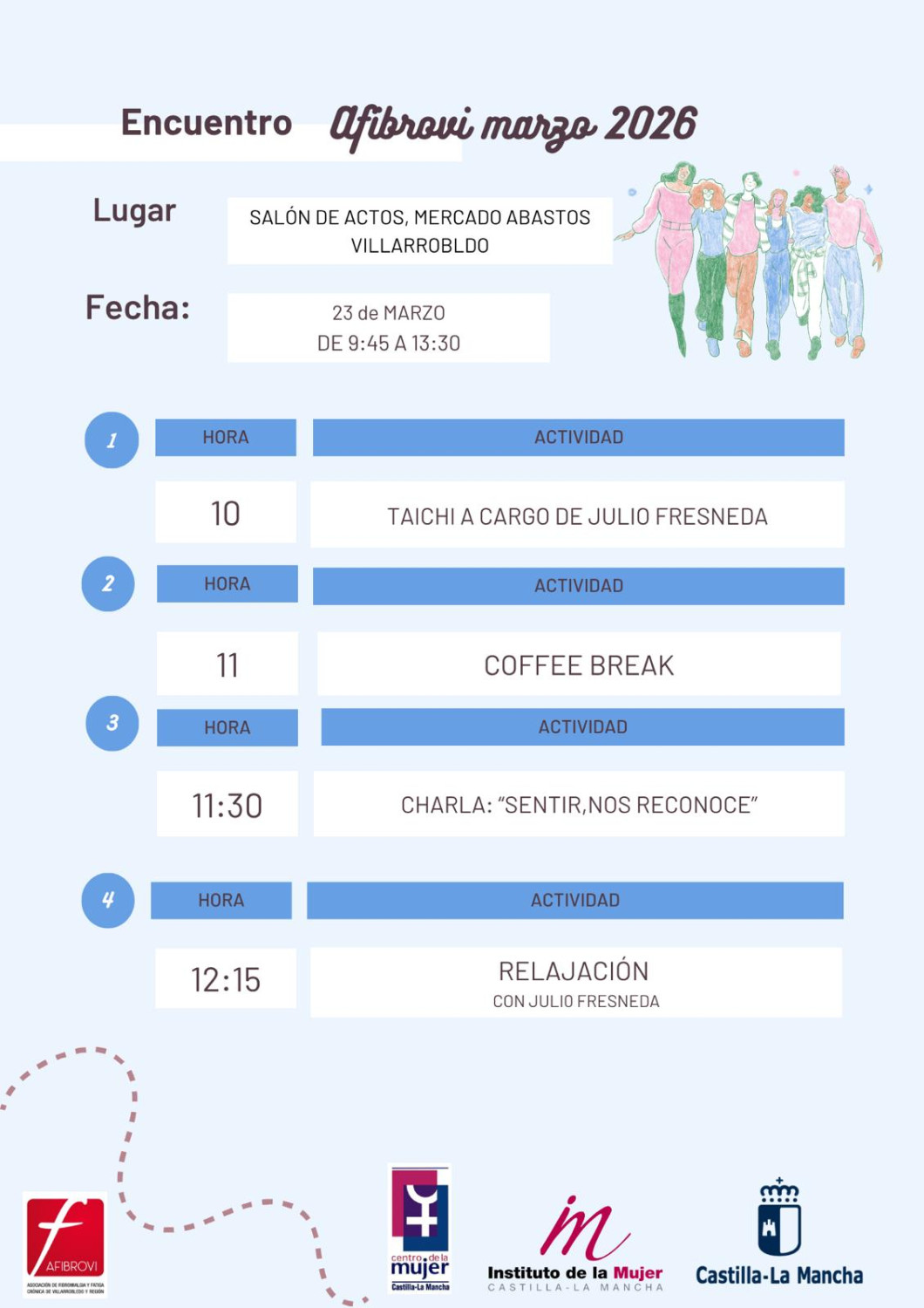 Agradecemos también la colaboración del Instituto de la Mujer de Castilla-La Mancha, una vez más comprometido con el apoyo a las asociaciones y a la mejora de la calidad de vida de las mujeres de nuestra región.